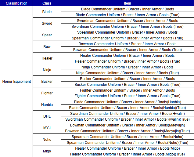 [Honor Armor Equipment]