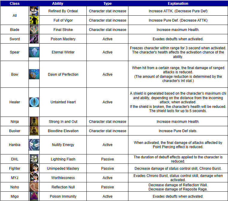 The ASC 6 Ability consist of all class can learn, as well as specific ability for each class.