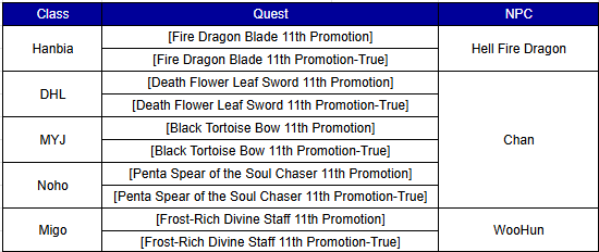 Please visit following NPC for weapon promotion quest.